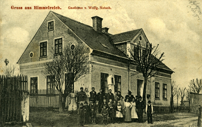 Původně to měla být hájovna, kde si revírník Reinl, který spravoval nedaleký Chebský les, na konci 19. století otevřel výčep pro turisty hojně navštěvující půvabné okolí. Hájovna se pak přesunula jinam (č.p. 12) a z domu se stal regulérní hostinec, ke kterému byl později přistavěn taneční sál. Poté ho pravděpodobně prodal Wolfgangu Netschovi, který je uváděn jako vlastník v adresáři z roku 1930. Po něm se hostinec jmenoval "Gasthaus Netsch". Součástí hostince byl i obchod se smíšeným zbožím. Bylo to oblíbené výletní místo širokého okolí a sídlo 3 místních spolků, dobrovolných hasičů a mužského a ženského křesťanského spolku. Víc jich v Himmelreichu nebylo. Rodina Netschů byla v roce 1946 odsunuta do Bavorska.