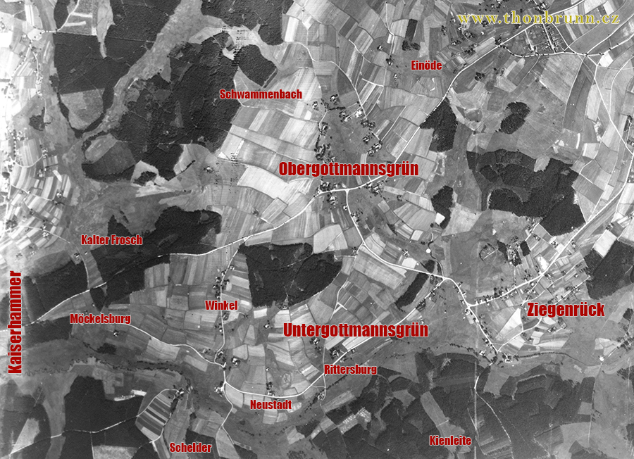 Dolní Gottmannsgrün (Untergottmannsgrün): rozptýlená osada z přelomu 13./14. stol., poté zpustlá;