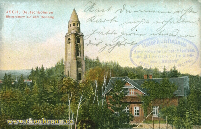 1. dubna 1895 se v turistické chatě na Hainbergu shromáždil větší počet váženého ašského měšťanstva, mezi nimi pan starosta Emil Schindler, aby zde oslavili 80. narozeniny knížete Otty von Bismarcka. A to byla vhodná příležitost, jak podpořit záměr výstavby věže; současně byla vyhlášena další peněžní sbírka. Díky tomu se stavební fond rozrostl na 2200 guldenů.
