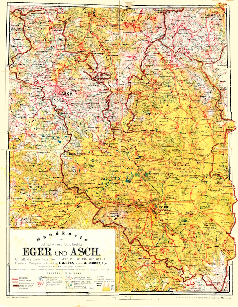 Karte der politischen u. Schulbezirke Eger und Asch um 1935