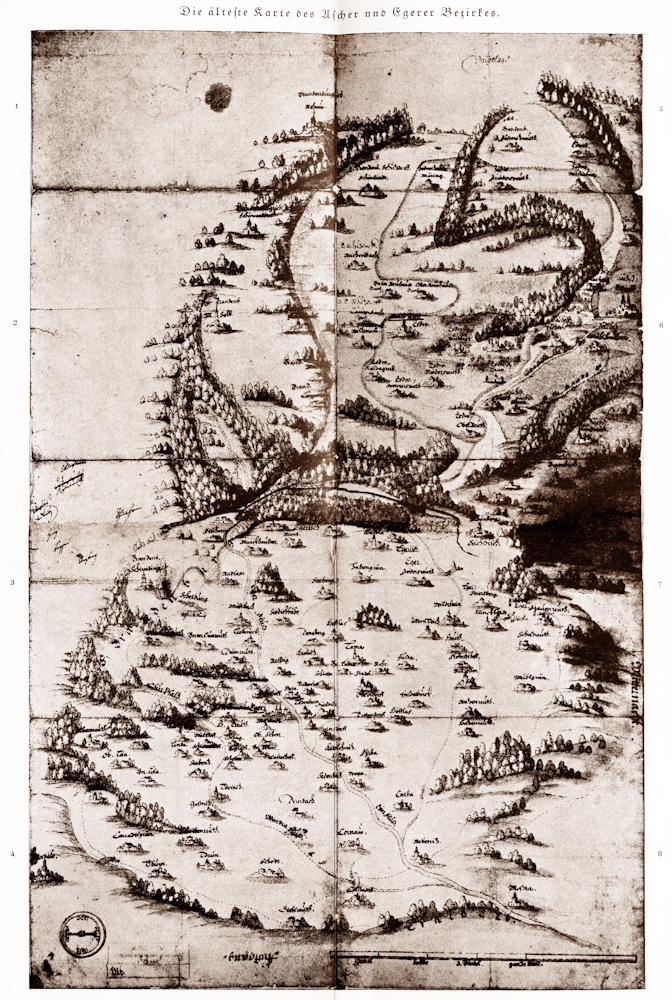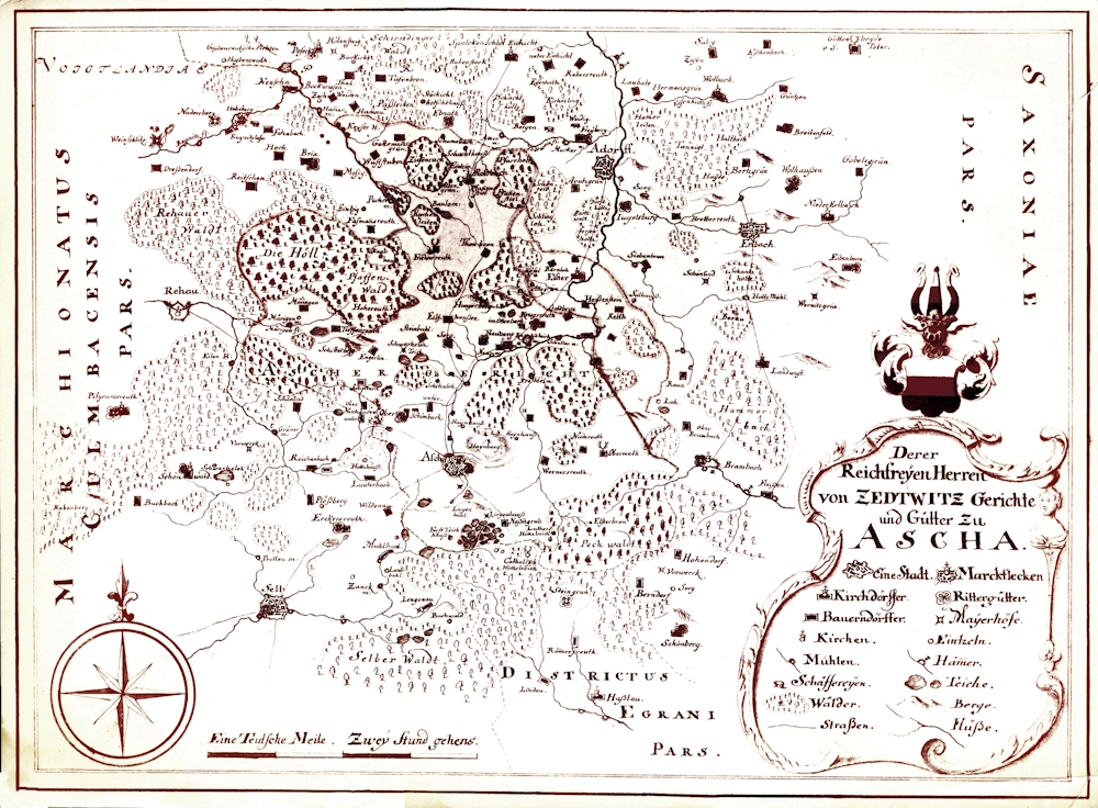 Wegen den wiederholten Steuer- und Zollstreitigkeiten in den Jahren 1612 – 1623 hat sich die Notwendigkeit herausgestellt, eine klare Vorstellung von der Lage des Ascher Gebietes zu erlangen, und es wurde deshalb eine Landkarte der Zedtwitz’schen Herrschaft Asch und deren nächster Umgebung angefertigt, die sich gegenwärtig in der Sammlung der Karten und Pläne des Prager Ministeriums des Inneren unter Nr. 1326 befindet. Es ist ein Blatt von 69 Zentimeter Höhe und 44 Zentimeter Breite.