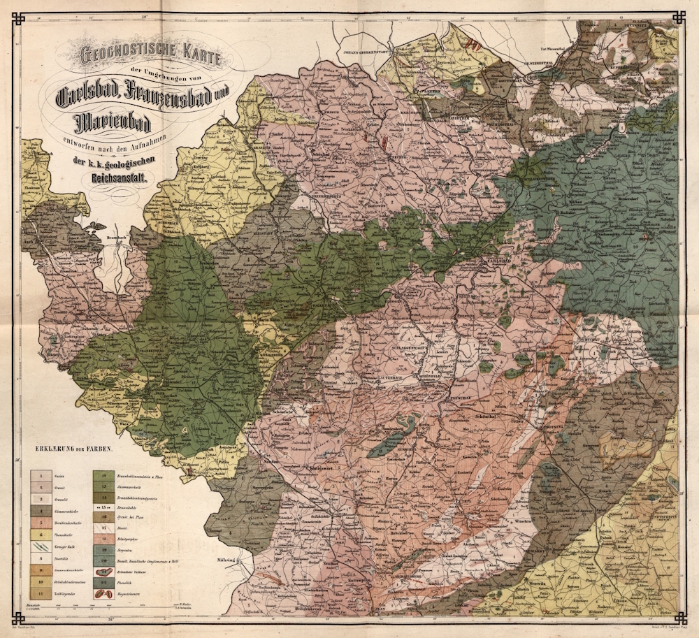 Geognostische Karte der Umgebung von Karlsbad, Franzensbad und Marienbad 1862 von Joh. Sandtner